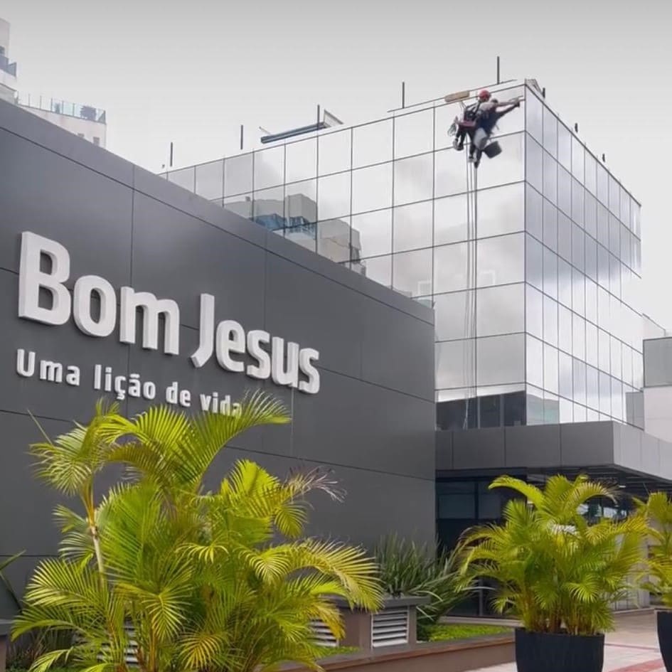 Limpeza de fachada do Colégio Bom Jesus.